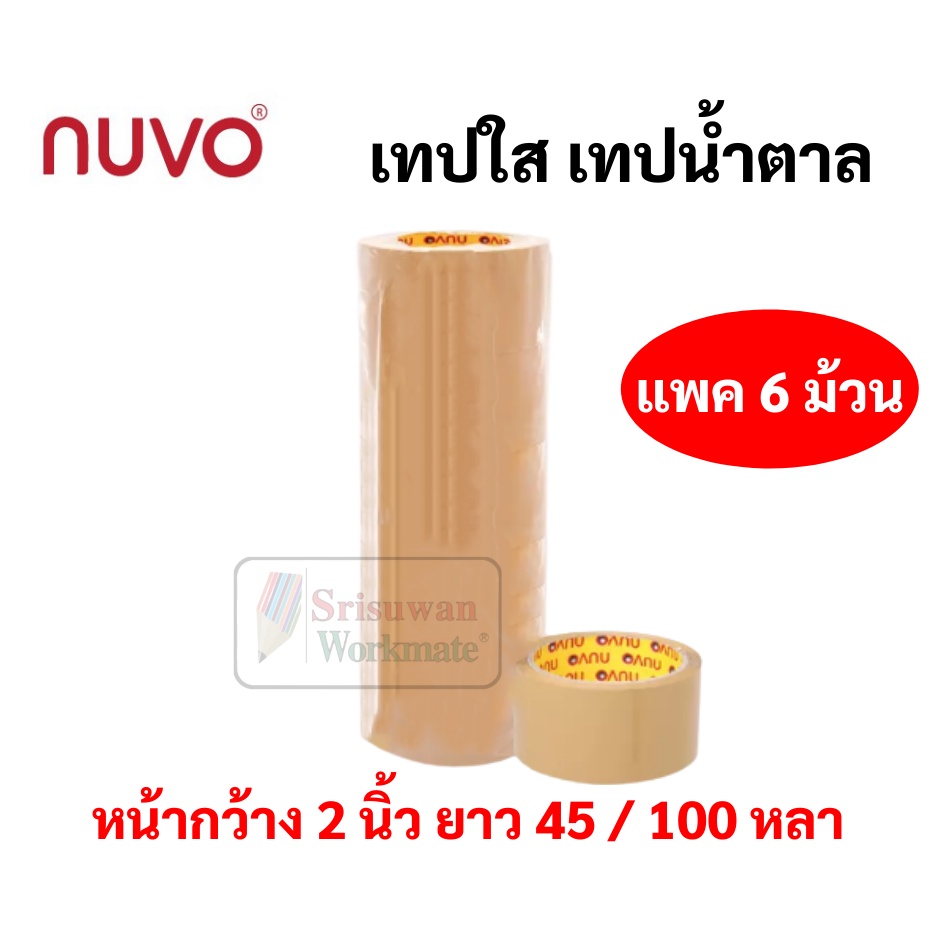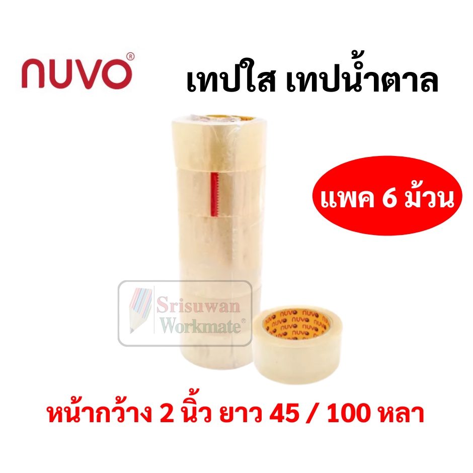 ยกแพค 6 ม้วน/แพค เทป OPP Nuvo ขนาด 48 มม. ยาว 100 หลา / 45 หลา เทปปิดกล่องพัสดุ สีใส สีชา ขุ่น