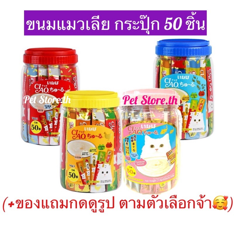 Lot ใหม่✳️Ciao ขนมแมวเลีย 50 ชิ้น❤️EXP.2026-2027❤️