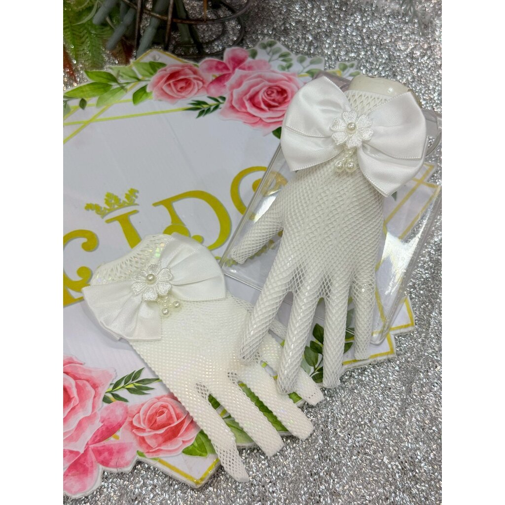 Tถุงมือเด็ก(มีหน้าร้านอยู่รัชดา)GS1สีขาว แบบตาข่ายสั้นติดโบว์ดูน่ารักมากเลย