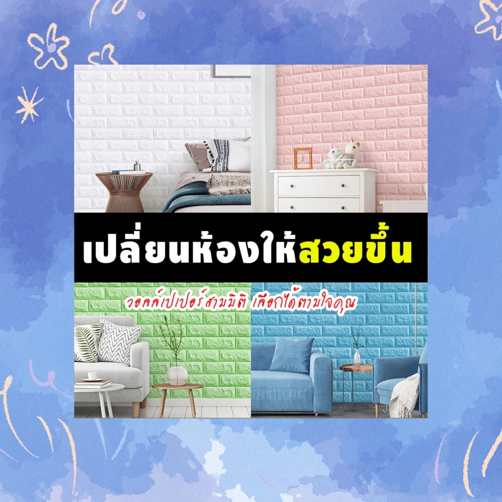 [ราคาส่วนลด ถูกที่สุด] วอลเปเปอร์ 3D แผ่นใหญ่ /70*77cm wallpaper สามมิติ ติดผนัง สไตล์ยุโรป มีกาวในตัว