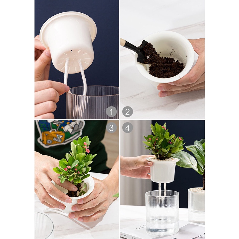 กระถางรดน้ำต้นไม้อัตโนมัติ 2 ชั้น ดูดน้ำ เก็บน้ำได้ ใส POTS - 24