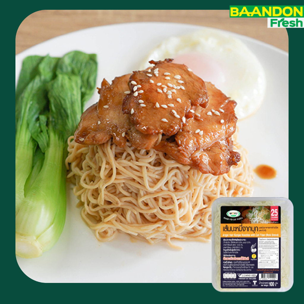 MOKI เส้นโอ๊ตไฟเบอร์ผสมบุกพร้อมทาน (keto) ขนาด 100 g คีโตทานได้ บะหมี่โอีตพร้อมทาน สปาโอ๊ตพร้อมทาน เส้นแบนโอ๊ต