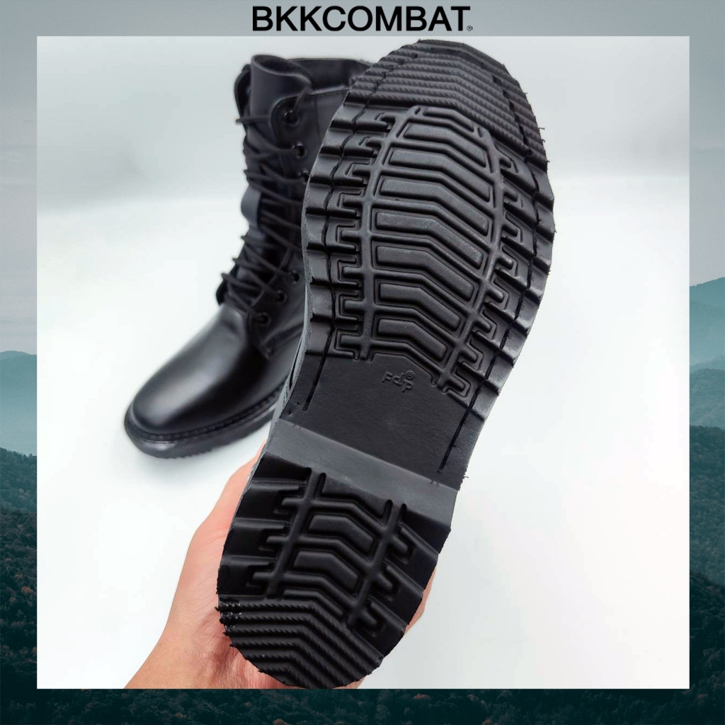 คอมแบท รหัส 008 หัวแหลมเรียบ ซิป สูง10นิ้ว หนังวัวแท้ หนังนิ่มขัดเงา ทรงRหัวแหลม แนะนำ+1ไซซ์
