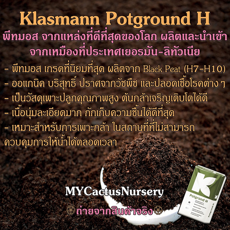 พีทมอส คลาสแมน พอทกราวด์ เอช Peatmoss Klasmann Potground H แบ่งบรรจุ 3 ขนาด 1 ลิตร / 3 ลิตร / 5 ลิตร