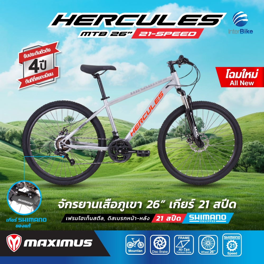 NEW จักรยานเสือภูเขา ชุดเกียร์ SHIMANO 21 สปีด ล้อ26 Maximas รุ่น HERCULES