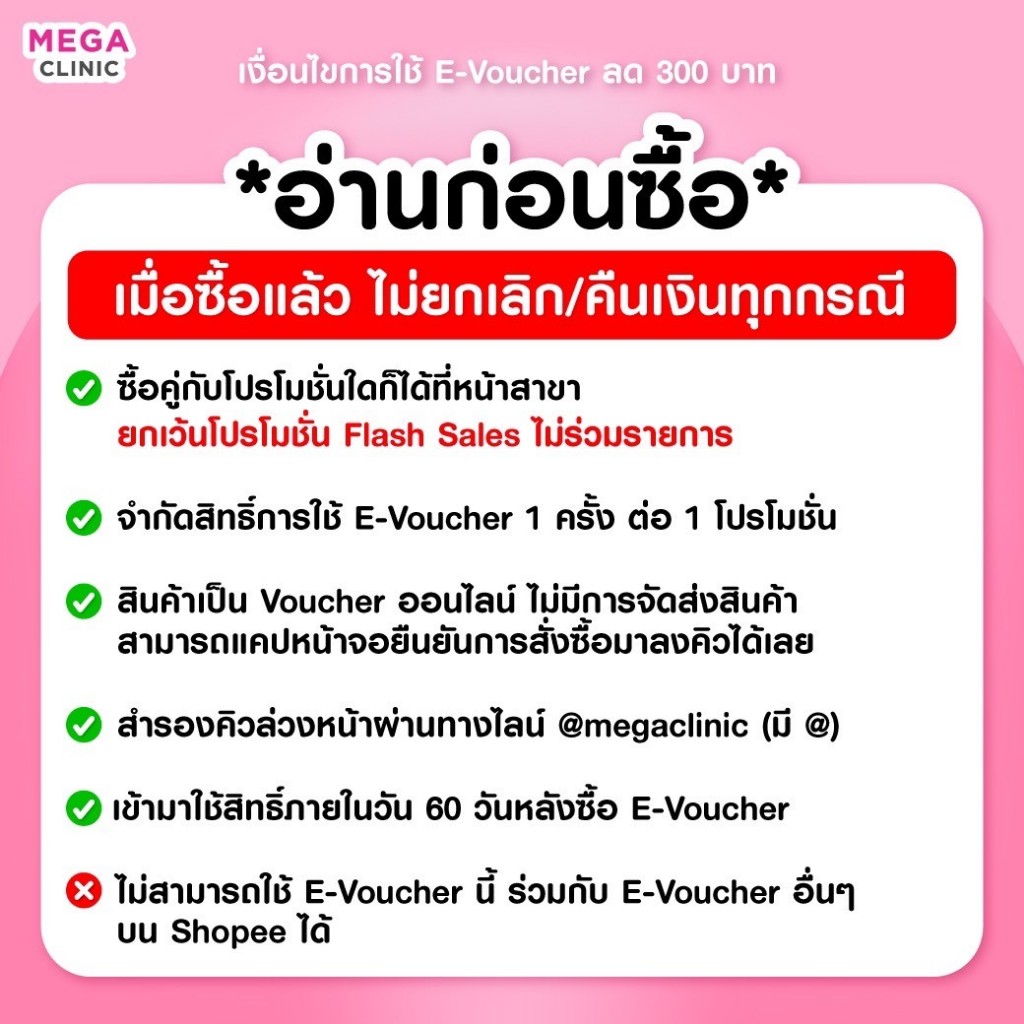 [E-voucher] เฉพาะเดือนนี้! แจกส่วนลด 300 บาท ไม่มีขั้นต่ำ ใช้ได้ที่เมกะคลินิกทุกสาขา MEGA CLINIC