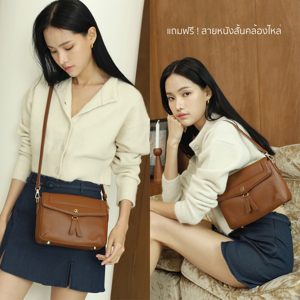 ใบสะพายคล่องตัว แถมฟรี! สายสั้นคล้องไหล่ รุ่น Ruby หนังวัวแท้สัมผัมนุ่มมาก Charin bag