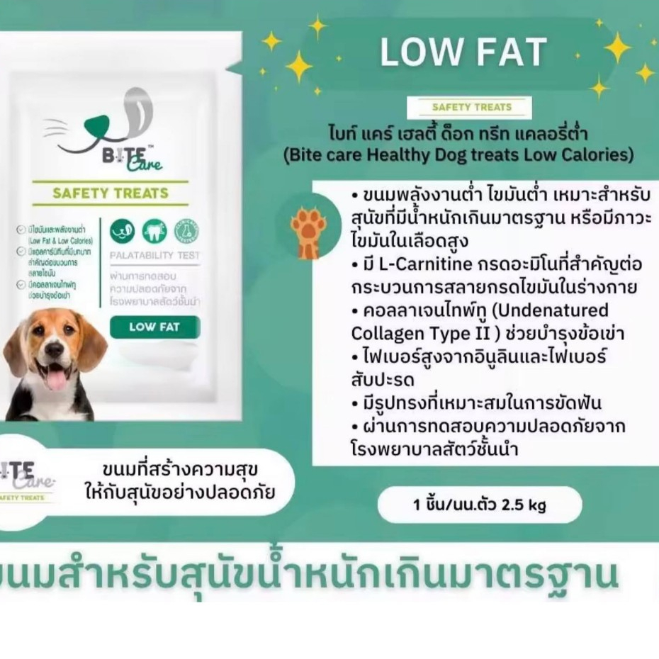 Bite care ขนมสำหรับสุนัขสุขภาพดี สุนัขป่วย Renal Care, Skin Care, Low Fat, Senior Care ขนาด 38 กรัม.