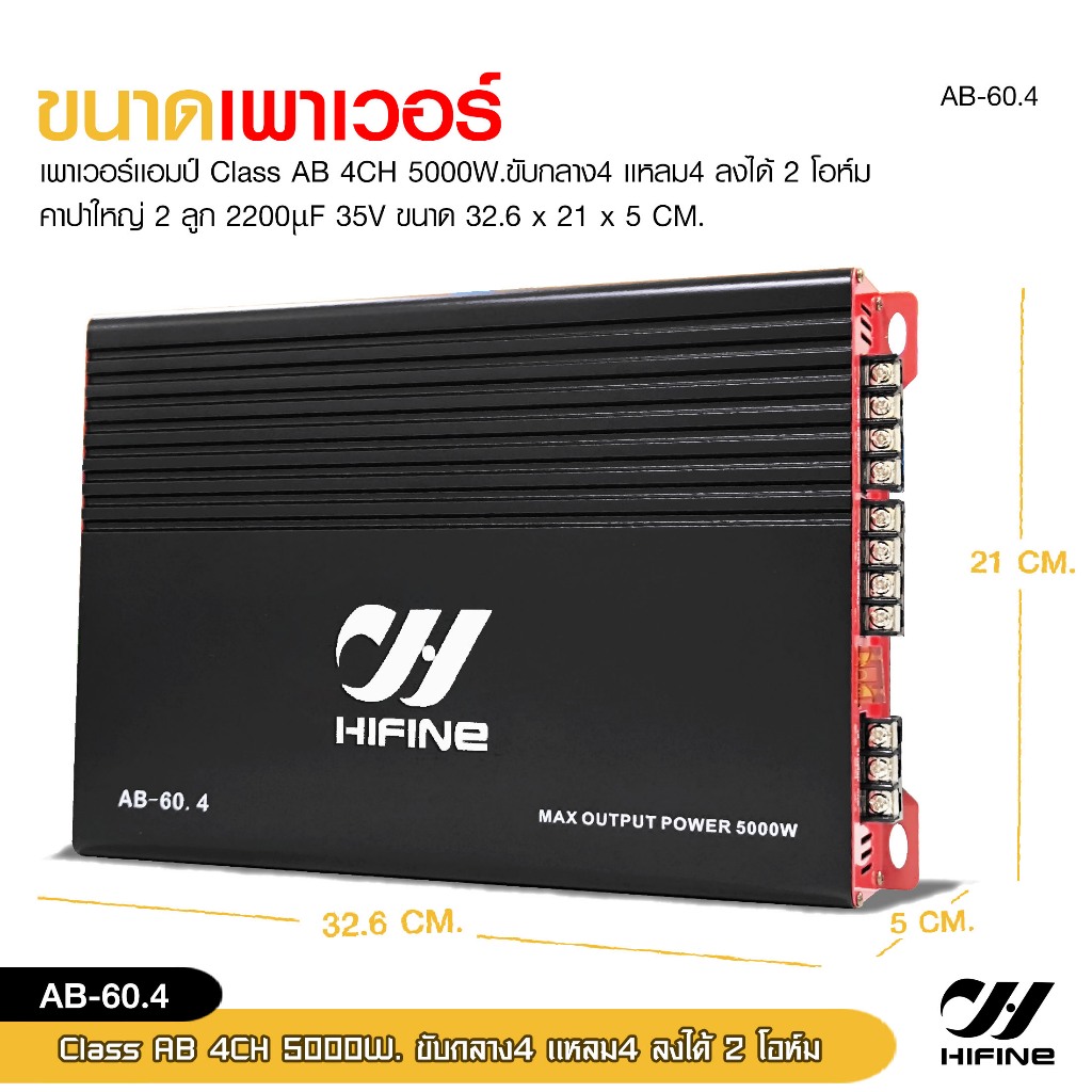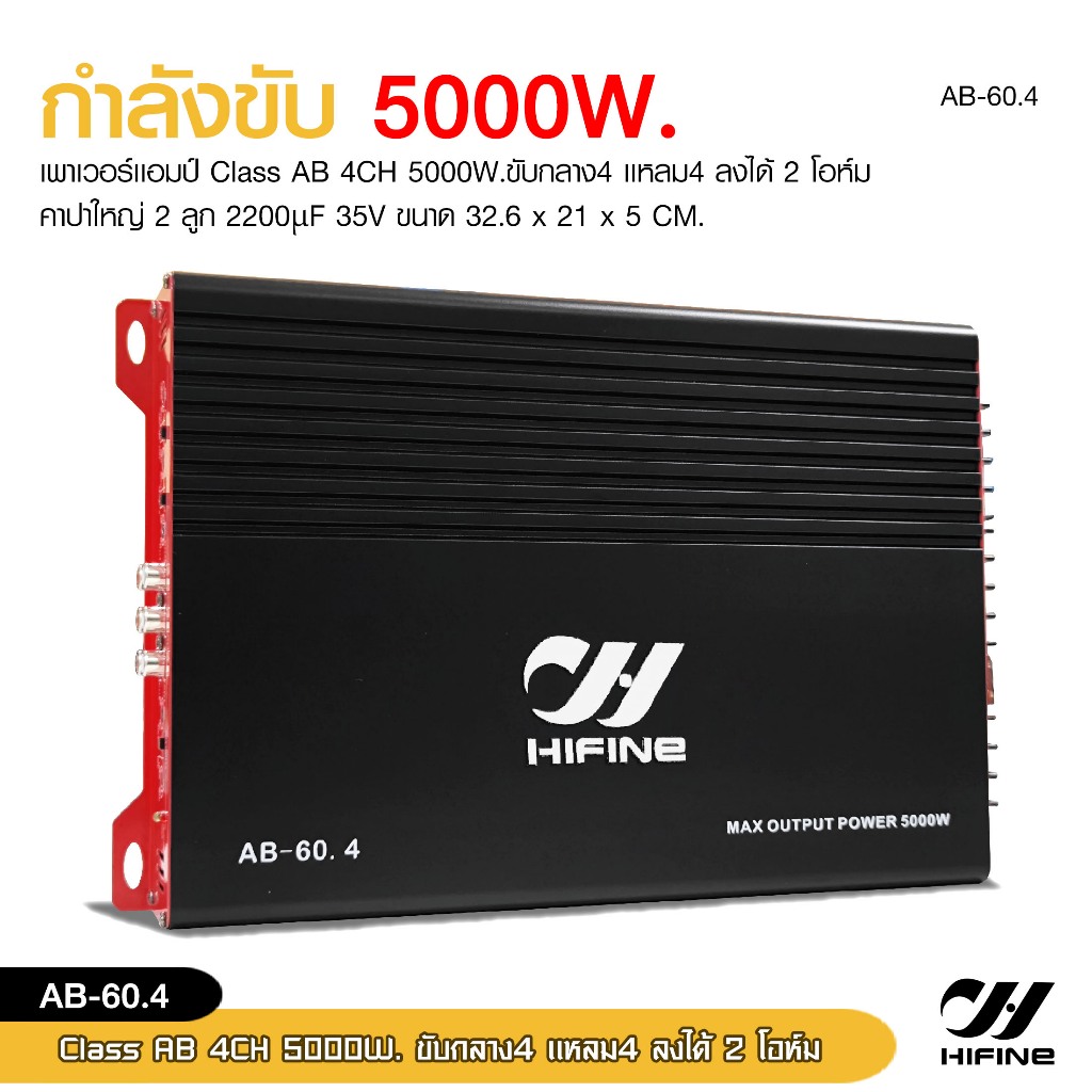 98auto HIFINE เพาเวอร์แอมป์ รุ่น AB-60.4 Class AB 4CH 5000W. ขับกลางแหลม ลงได้ 2โอห์ม ราคาต่อ 1 ตัว