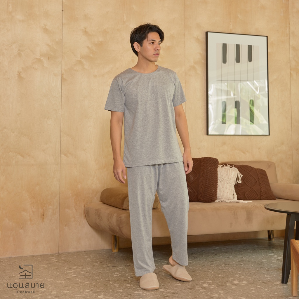 ชุดนอนชาย/หญิง (Unisex) เสื้อ+กางเกงขายาว (สีเทาเข้ม) ผ้าฝ้าย มินิมอล เรียบๆ นอนสบาย ใส่สบาย🌙สินค้าคุณภาพ🌙