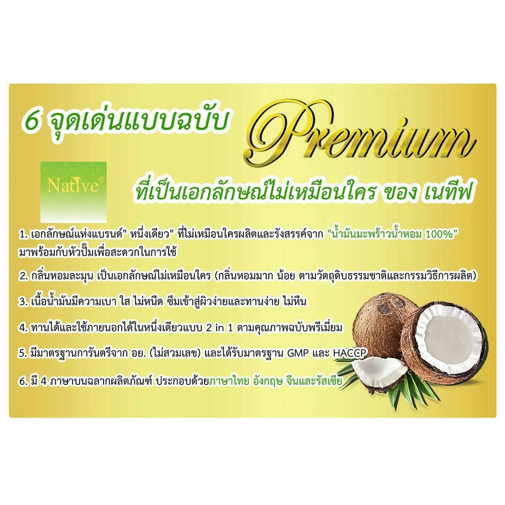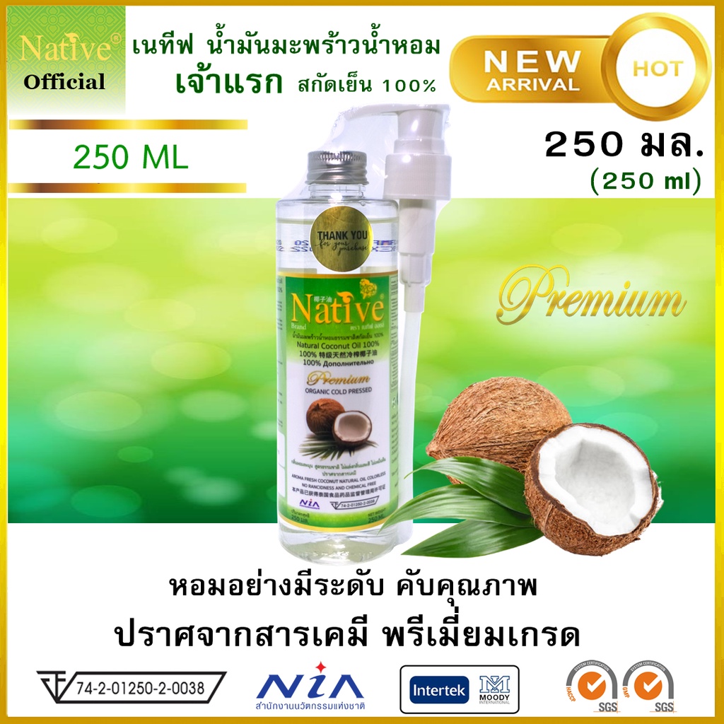 [เนทีฟ 250 ml] Native Organic coconut oil น้ำมันมะพร้าวสกัดเย็น บริสุทธิ์ ทานได้ บำรุงผิว ผม เล็บ
