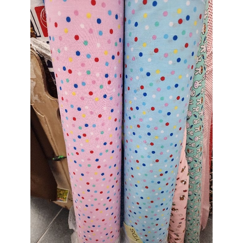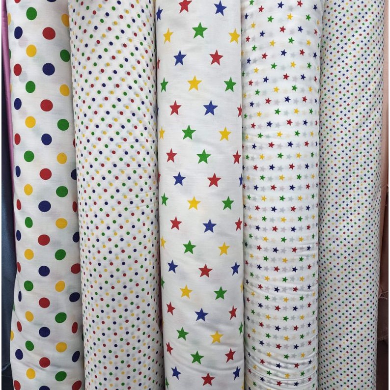 ผ้าเมตร หลา ลายการ์ตูน ผ้าคอตตอลผสม ทีซีการ์ตูน 016 ลายจุด ลายดาว หน้ากว้าง 110-115cm