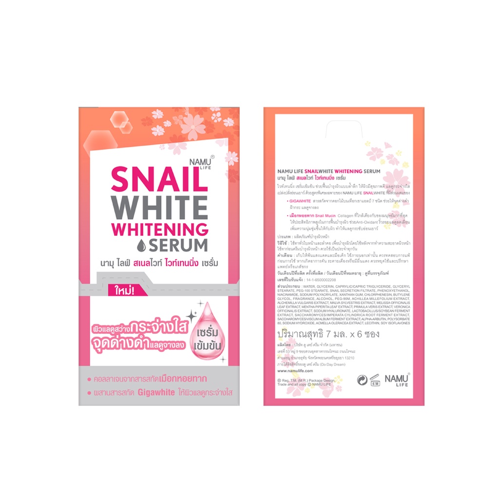 SNAILWHITE สเนลไวท์ นามุไลฟ์ ไวท์เทนนิ่ง เซรั่ม 7x6 มล. (5แถม1) 10SW00015x6