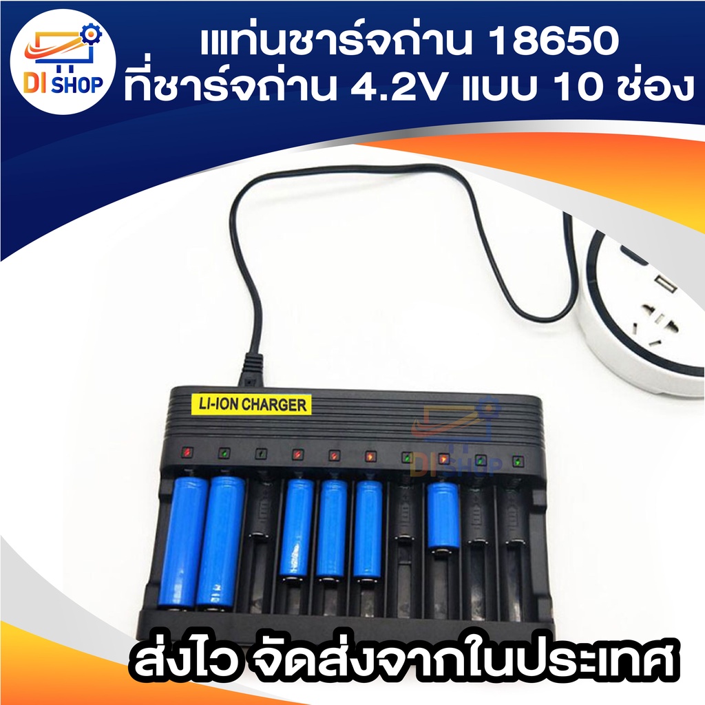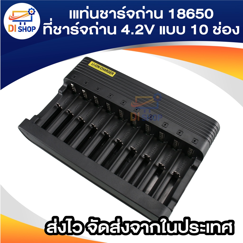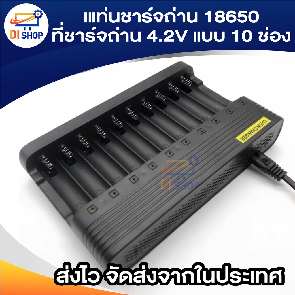 แท่นชาร์จถ่าน 18650 เครื่องชาร์จถ่าน ที่ชาร์จถ่าน 4.2V แบบ 10 ช่อง (ชาร์จเต็มตัดไฟอัตโนมัติ)
