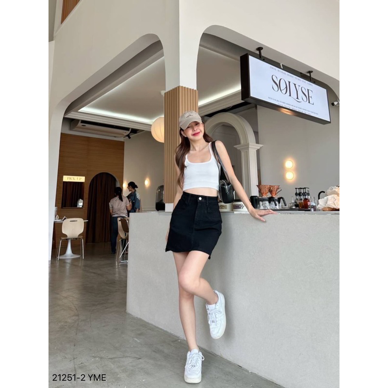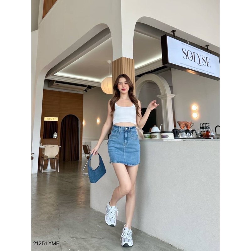 กระโปรงยีนส์ทรงเอ เอวสูง ผ้ายืด แต่งเว้าข้างเล็กน้อย มีซับในกางเกง#YME21251
