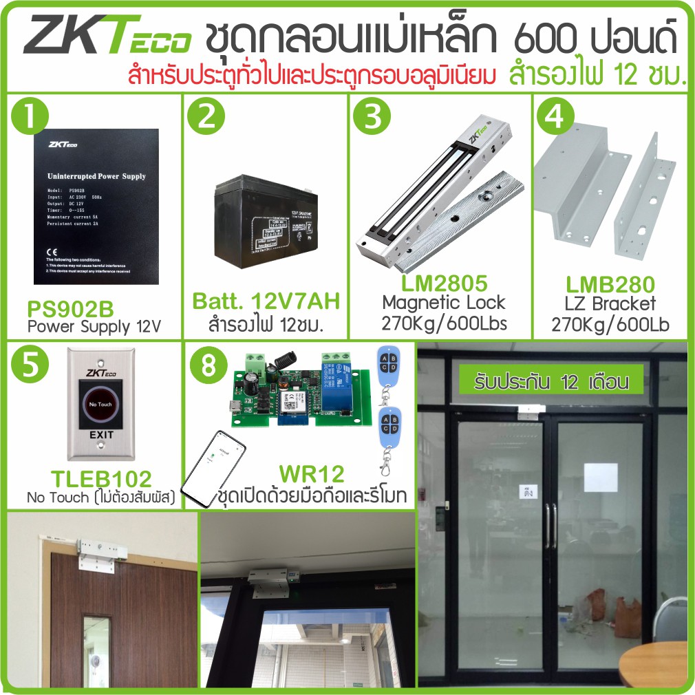 ZKTeco ZK0525 ชุดกลอนแม่เหล็ก เปิดด้วยรีโมท แอป-มือถือ สำหรับประตูบานสวิง-บานเลื่อน สวิทซ์ NoTouch