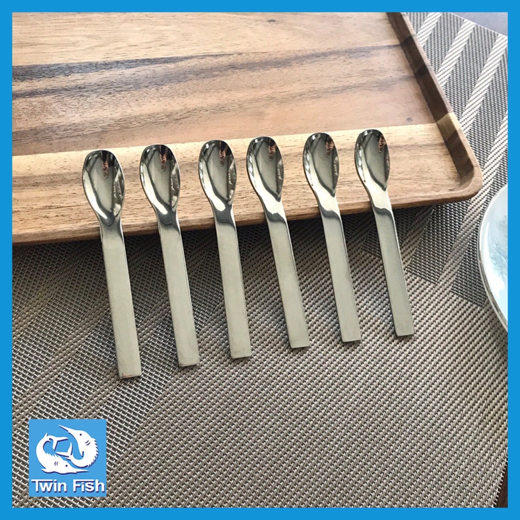 6ชิ้น ช้อนกาแฟเอสเพรสโซ่ สแตนเลสหนา 2มม TwinFish รหัส602