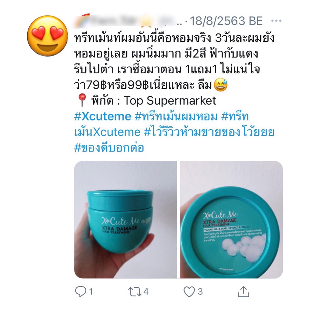 X Cute Me Hair Treatment 450 / 250 ml. ทรีทเม้นท์บำรุง ผมหอม เติมเต็มความชุ่มชื้น ผมนุ่มลื่น จัดทรงสวย