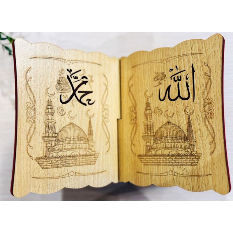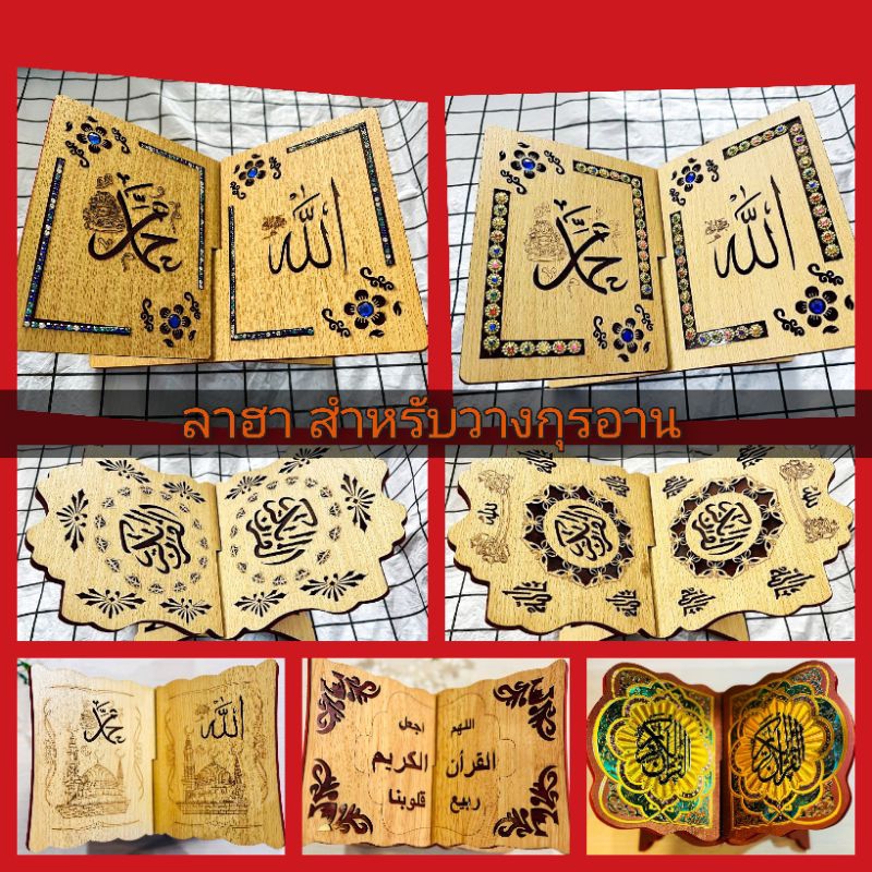 ลาฮา ( ชั้นวางอัลกุรอ่าน/ รองหนังสือ )✅ จากโรงงาน งานแกะสลัก ไม้อัดเคลือบอย่างดี