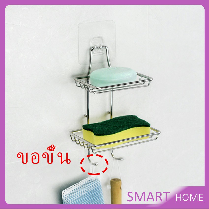 ที่วางสบู่สแตนเลส ชั้นวางของ ไม่ต้องเจาะผนัง วางสบู่ ฟองน้ำ soap dish