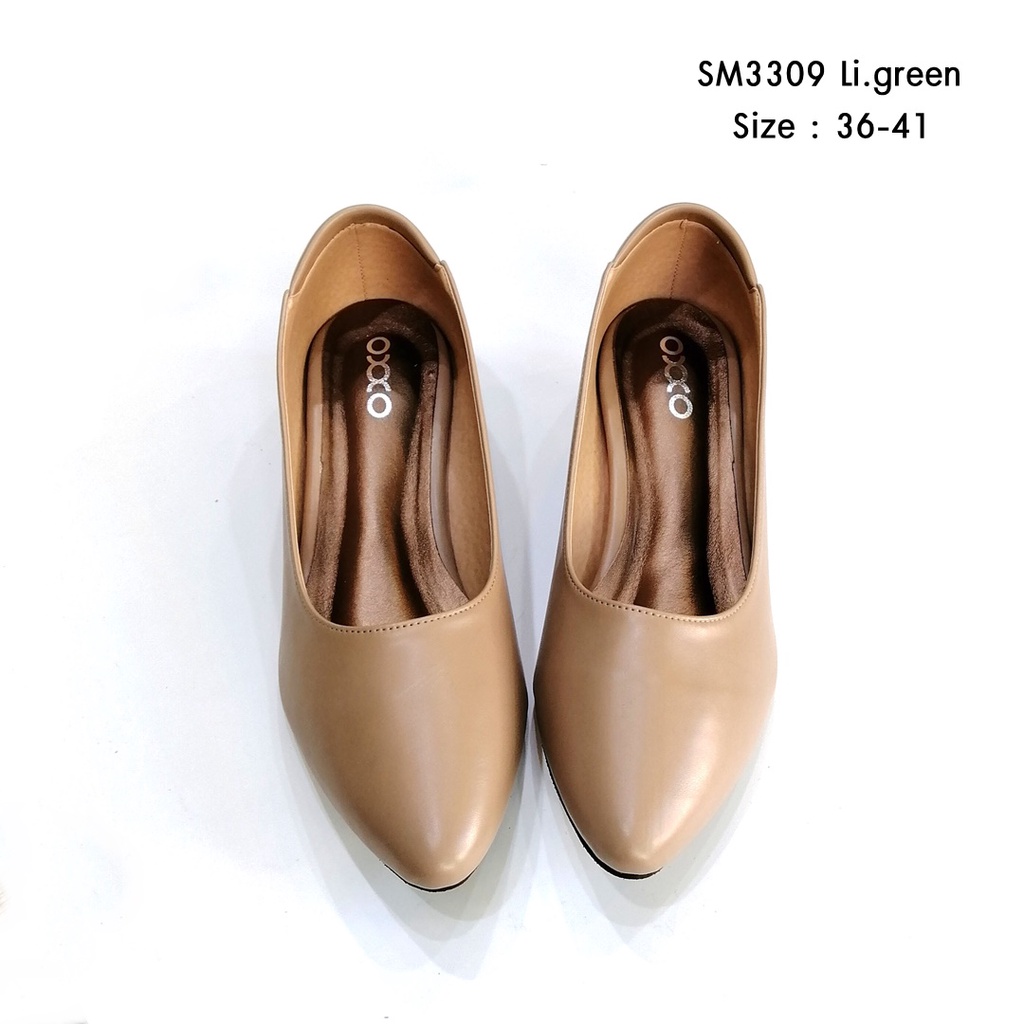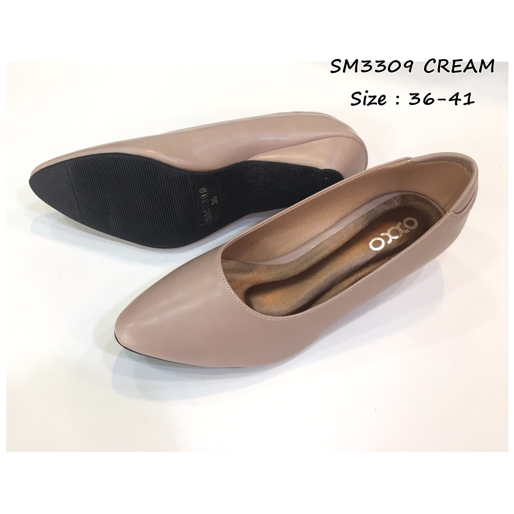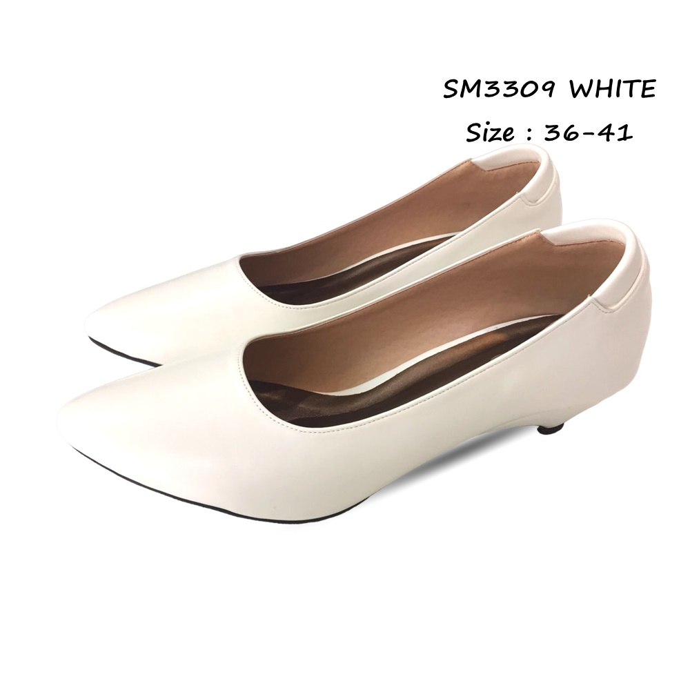 prettycomfort รองเท้าคัทชู ผู้หญิง ทรงหัวแหลม สูง1นิ้ว ส้นกันลื่นตอกมือ ทำจากหนังพียู นิ่มใส่สบาย SM3309
