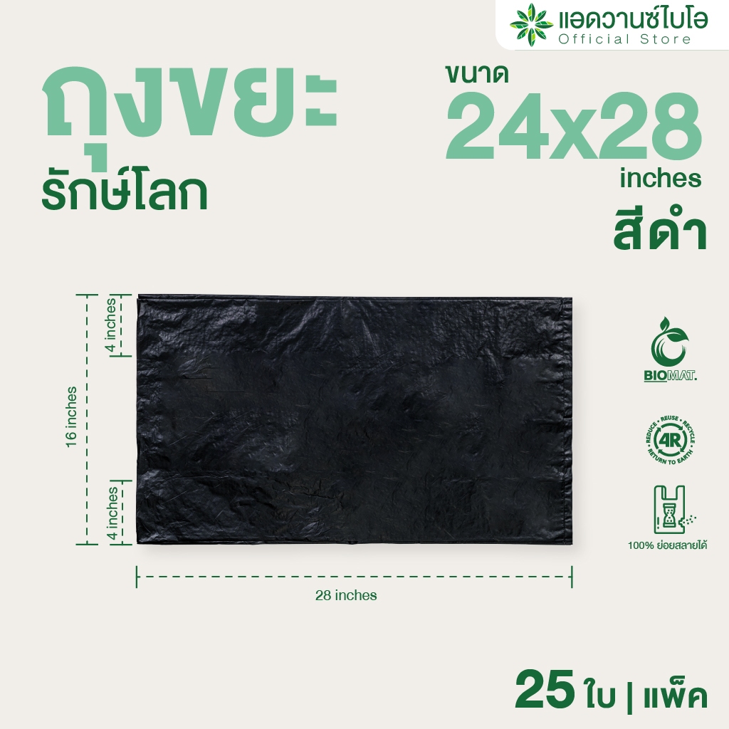 AdvanceBIO : ถุงขยะดำหนาย่อยสลาย 24x28นิ้ว บรรจุ 25 ชิ้น/แพ็ค รุ่น 2002