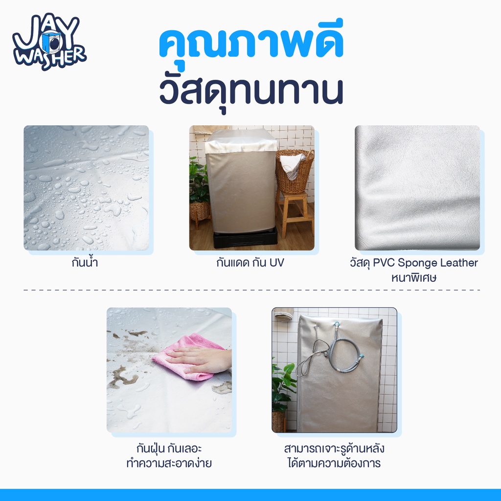 JW ผ้าคลุมเครื่องซักผ้า ฝาบน7-25 กิโล.(ใส่ได้ทุกยี่ห้อ) ป้องกัน UV วัสดุเกรดพรีเมี่ยม
