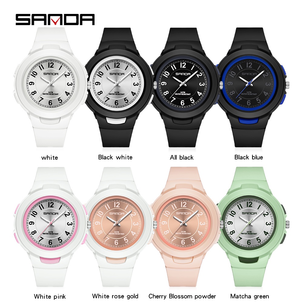 Sanda 2022 นาฬิกาข้อมือสปอร์ต กันน้ํา สีพื้น สําหรับเด็กผู้ชาย ผู้หญิง 6095-9