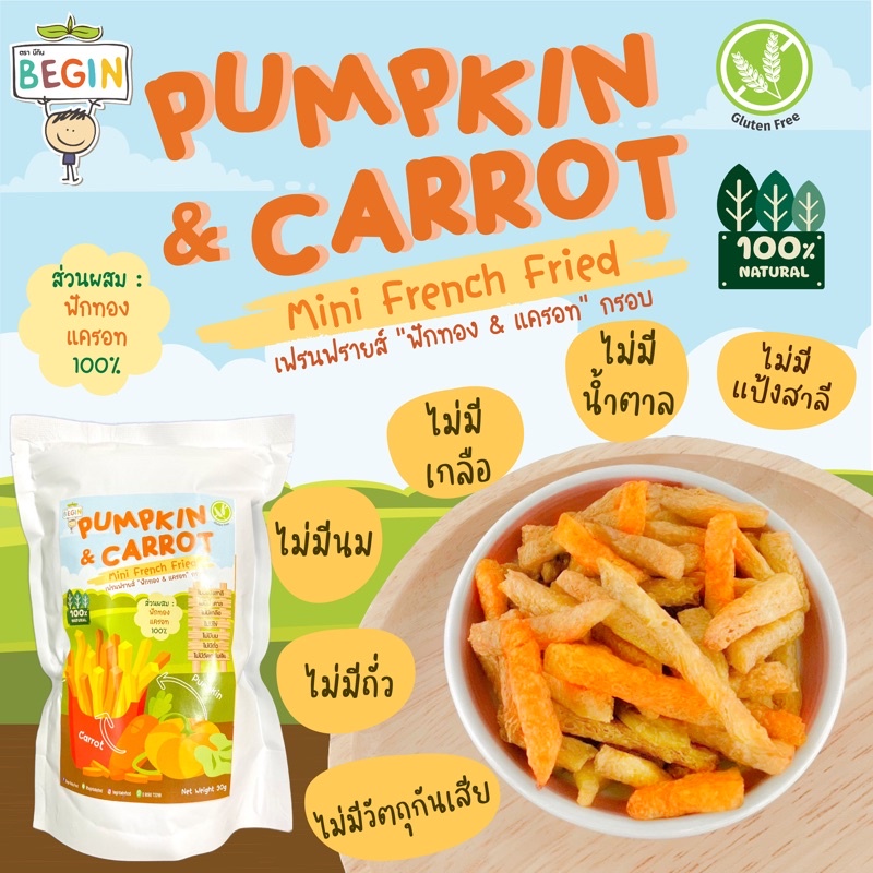 เฟรนฟรายด์ ฟักทอง & แครอท ธรรมชาติ100% ไม่มีน้ำตาล ไม่มีเกลือ ผักผลไม้กรอบ ขนมเด็ก ทานเล่น มีประโยชน์ ขนมสำหรับเด็ก