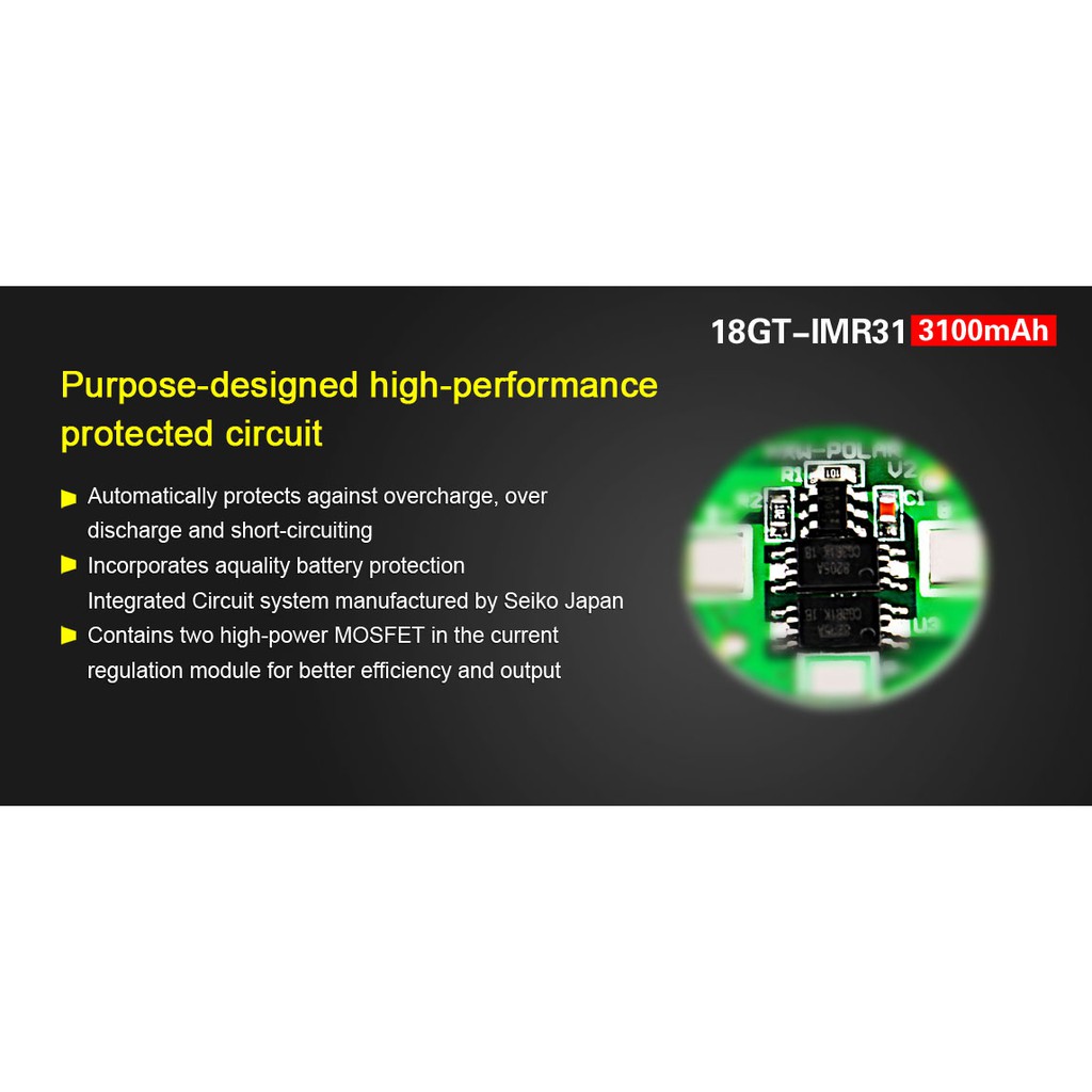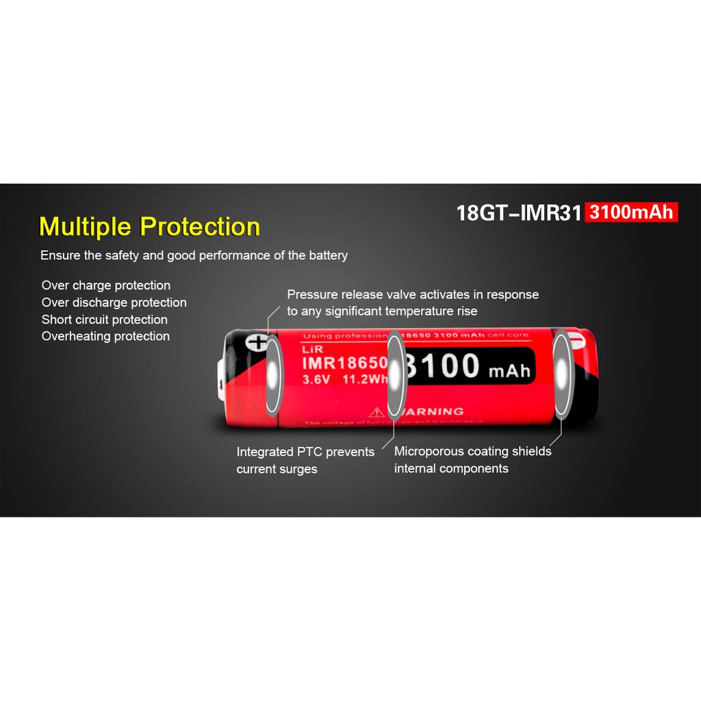 Klarus 18GT-IMR31 แบต 18650 3100mAh 3.6V ชนิดมีวงจรแบบจ่ายกระแสได้ได้สูง