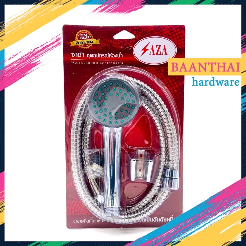 ฝักบัว *โครเมี่ยม* Saza ฝักบัวครบชุด ฝักบัวอาบน้ำ พร้อมสาย + ที่ล็อคติดผนัง มีมอก. สวยงาม คงทน