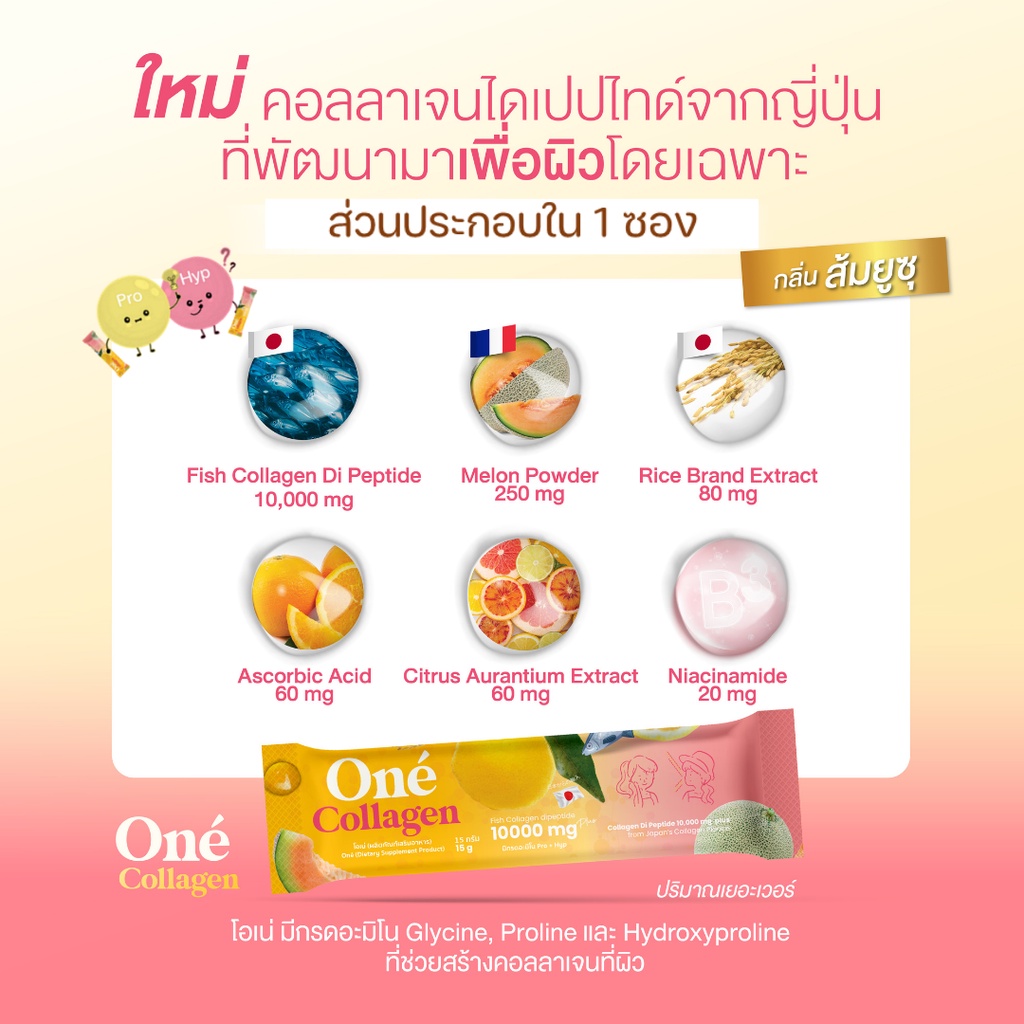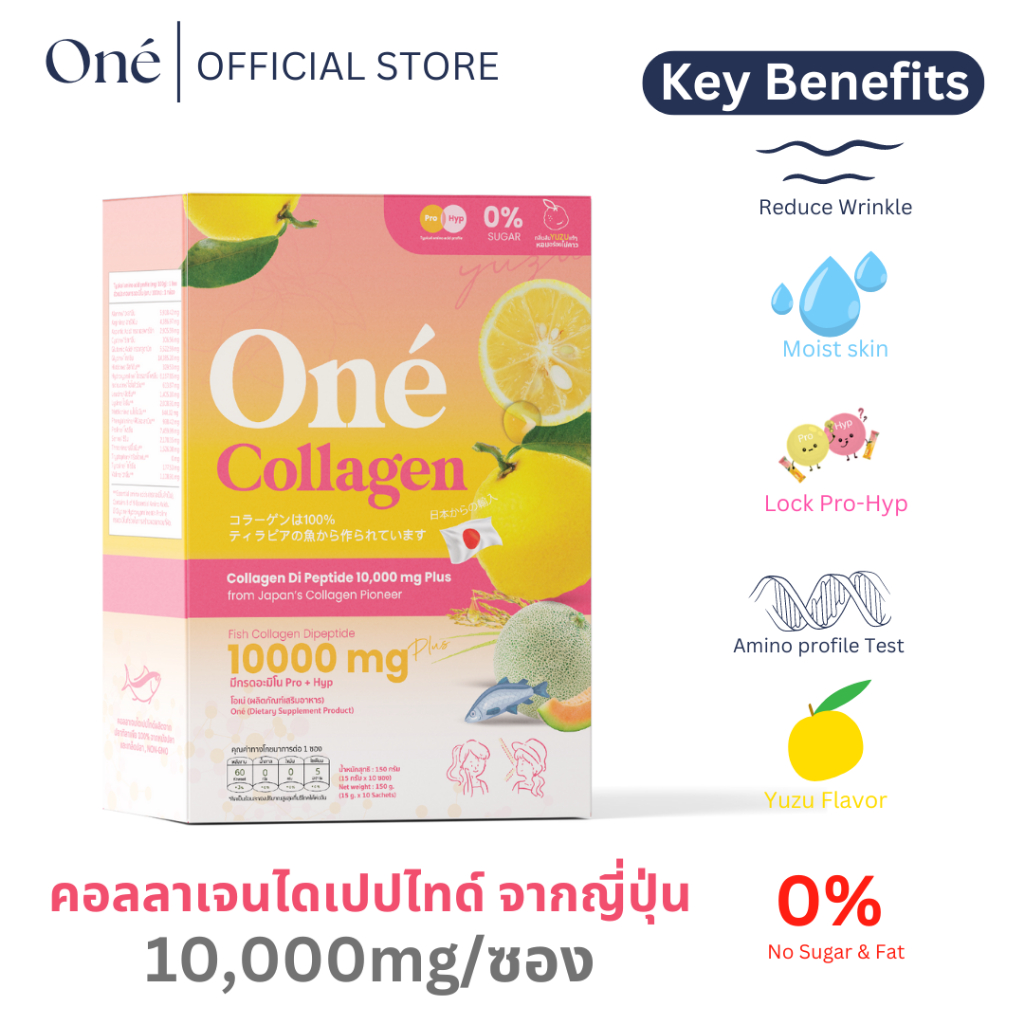 [คอลลาเจนเภสัช]โอเน่ คอลลาเจน (One’ Collagen) คอลลาเจน ไดเปปไทด์ 10,000 มิลลิกรัม คอลลาเจนสำหรับผิวฉ่ำ ขาว