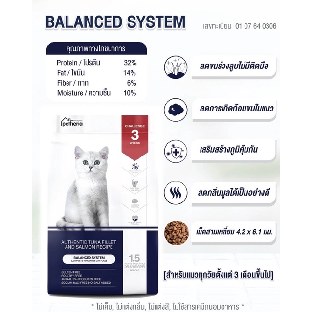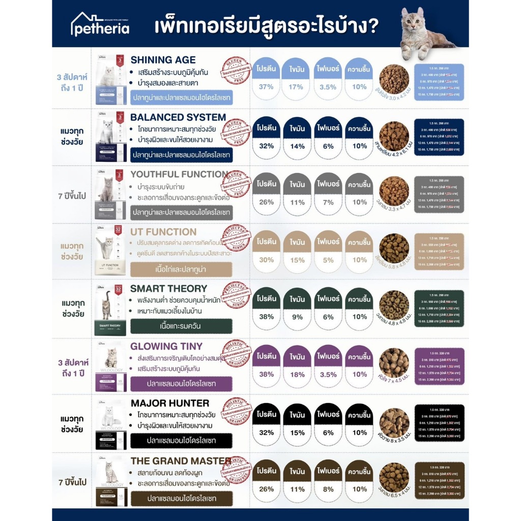 Petheria อาหารแมว เพ็ทเทอเรีย โฮลิสติก-เกรนฟรี ลดการเกินก้อนขน ลดขนร่วง ไม่เค็ม ขนาด 1-1.5 kg