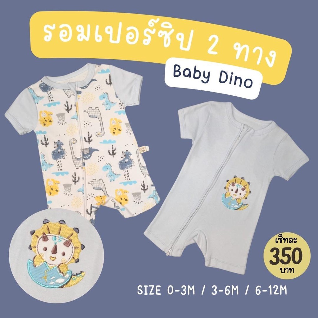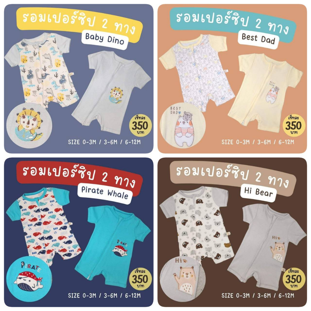 เซ็ท 2 ชุด / 0-12M / รอมเปอร์แขนขาสั้นเด็กอ่อน ซิปเปิดได้ 2 ทาง นุ่ม ใส่สบาย Romper 2 Way Zipper