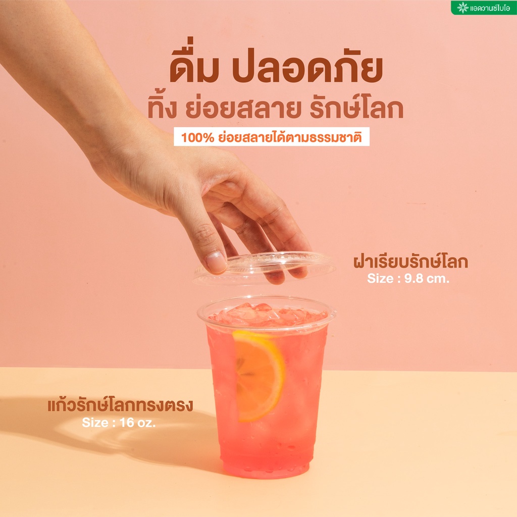 AdvanceBIO : ฝาเรียบ PET ย่อยสลาย ขนาด 16,22 ออน บรรจุ 50 ชิ้น/แพ็ค รุ่น 5029