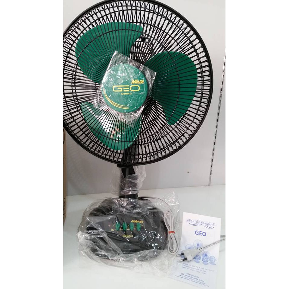 [มีมอก.] พัดลม GEO ขนาด 12 นิ้ว ปรับลมได้ 3 ระดับ ส่ายได้ รับประกันร้านค้า 3 เดือน รุ่น ninja รับประกันมอเตอร์ 3 เดือน