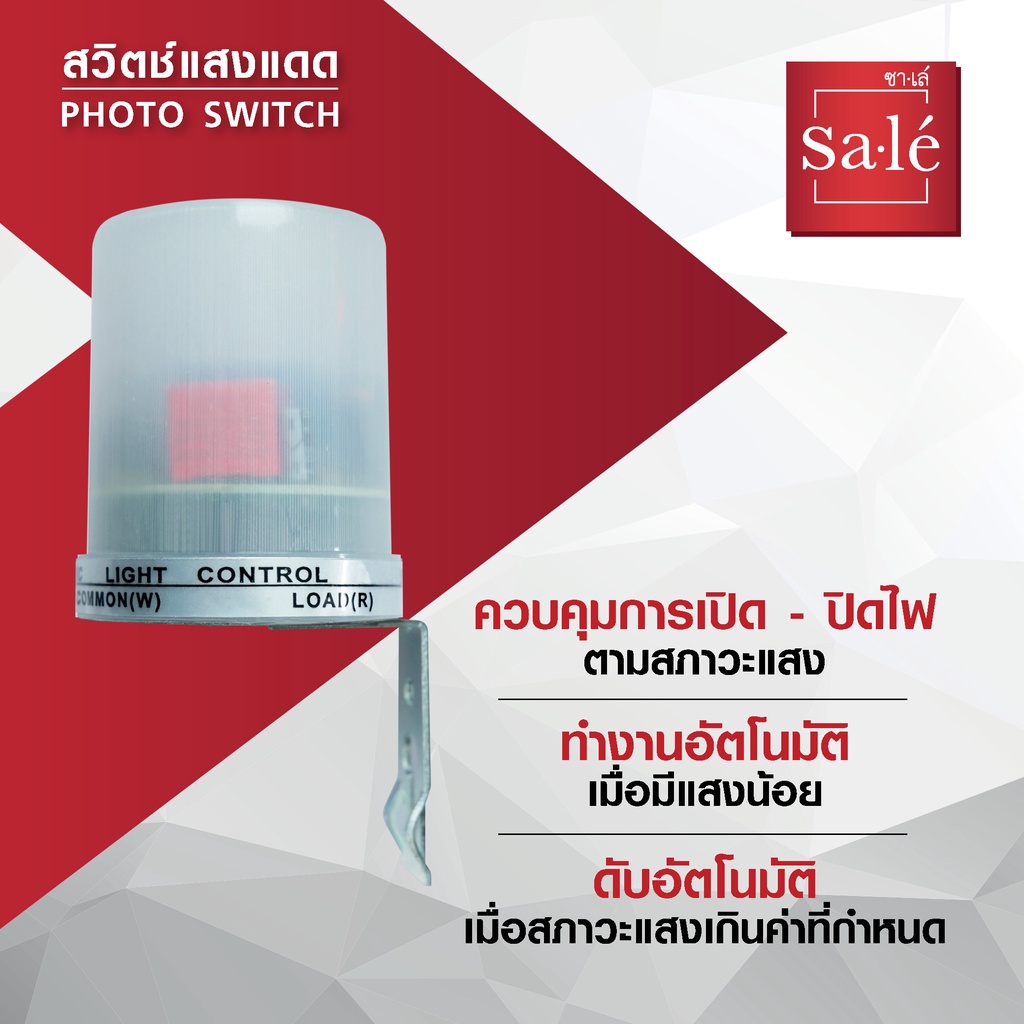 สวิตช์แสงแดด ชนิดติดผนัง (Photo Switch) ซาเล่ รหัสสินค้า SASO-15A