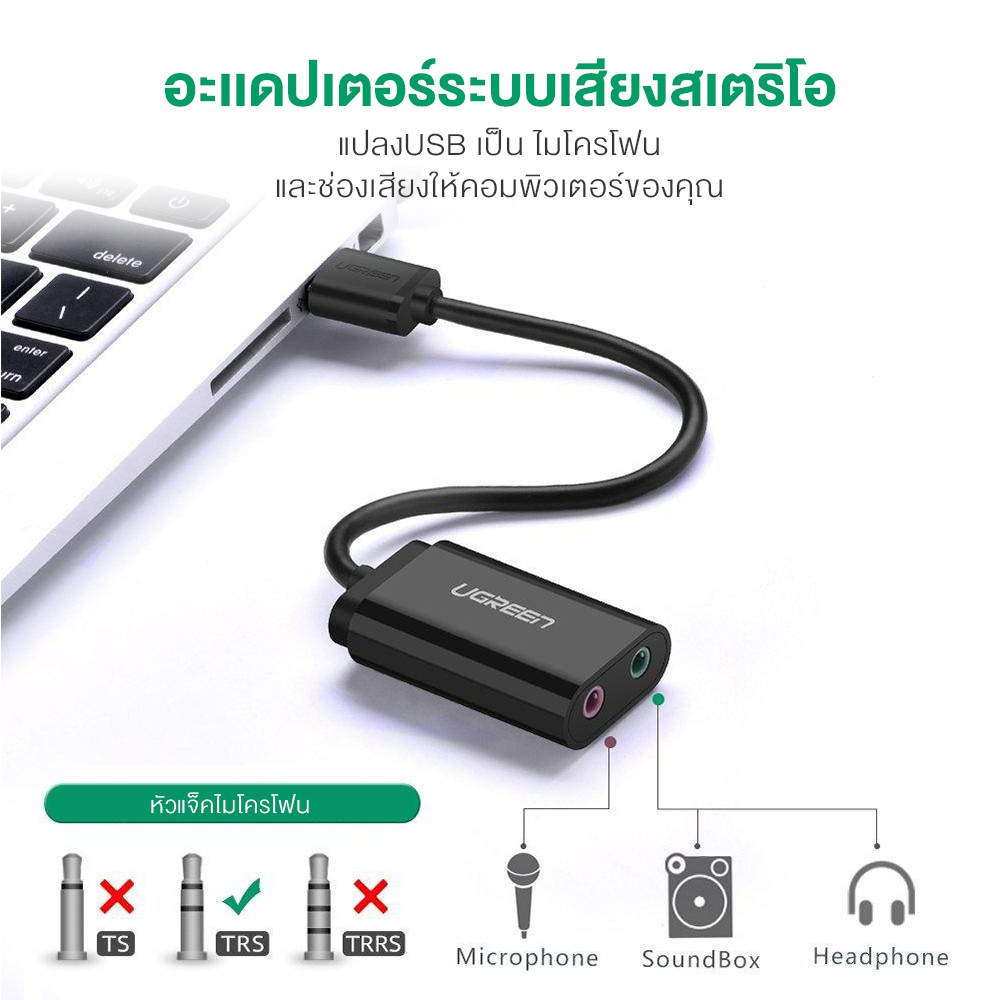UGREEN รุ่น 30724 การ์ดเสียง Sound Card AUX 3.5mm แปลงสัญญาณเสียงและไมโครโฟน