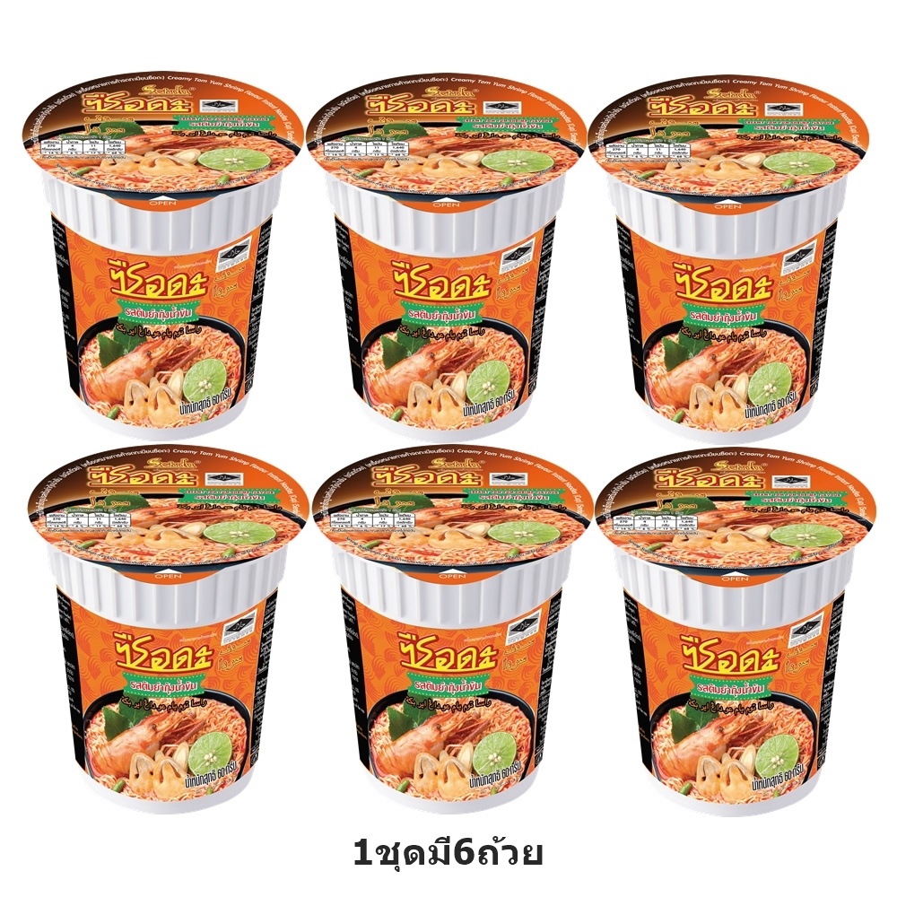 ซือดะ บะหมี่กึ่งสำเร็จรูปรสต้มยำกุ้งน้ำข้น ชนิดถ้วย 1ชุดมี6ถ้วย