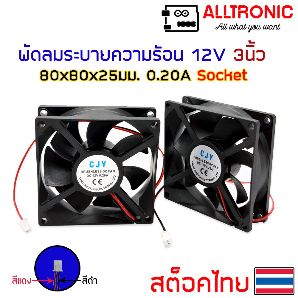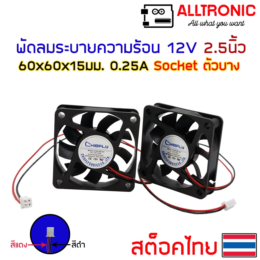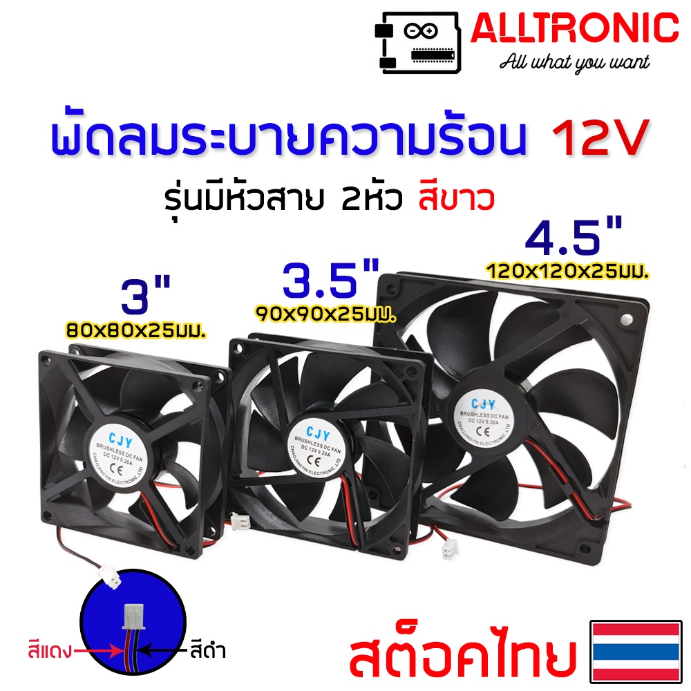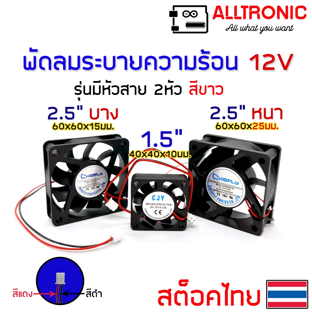 พัดลมระบายความร้อน 12V หลายขนาด 1.5 2.5 3 3.5 4.5 นิ้ว 2 สาย หัว 2.54mm connector สีขาว fan socket CJY Chicfly