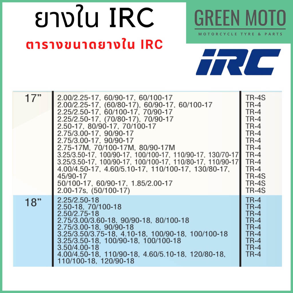 ยางในมอเตอร์ไซค์คุณภาพสูง IRC ไออาร์ซี ขนาด 4.0/5.10 - 17 นิ้ว สำหรับยางนอก 110/90-17, 110/100-17, 120/70-17, 130/80-17