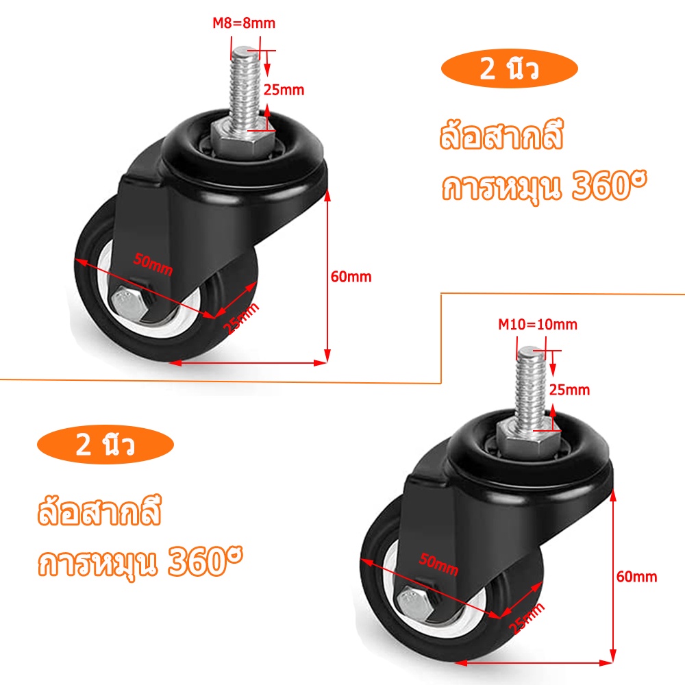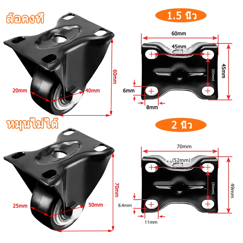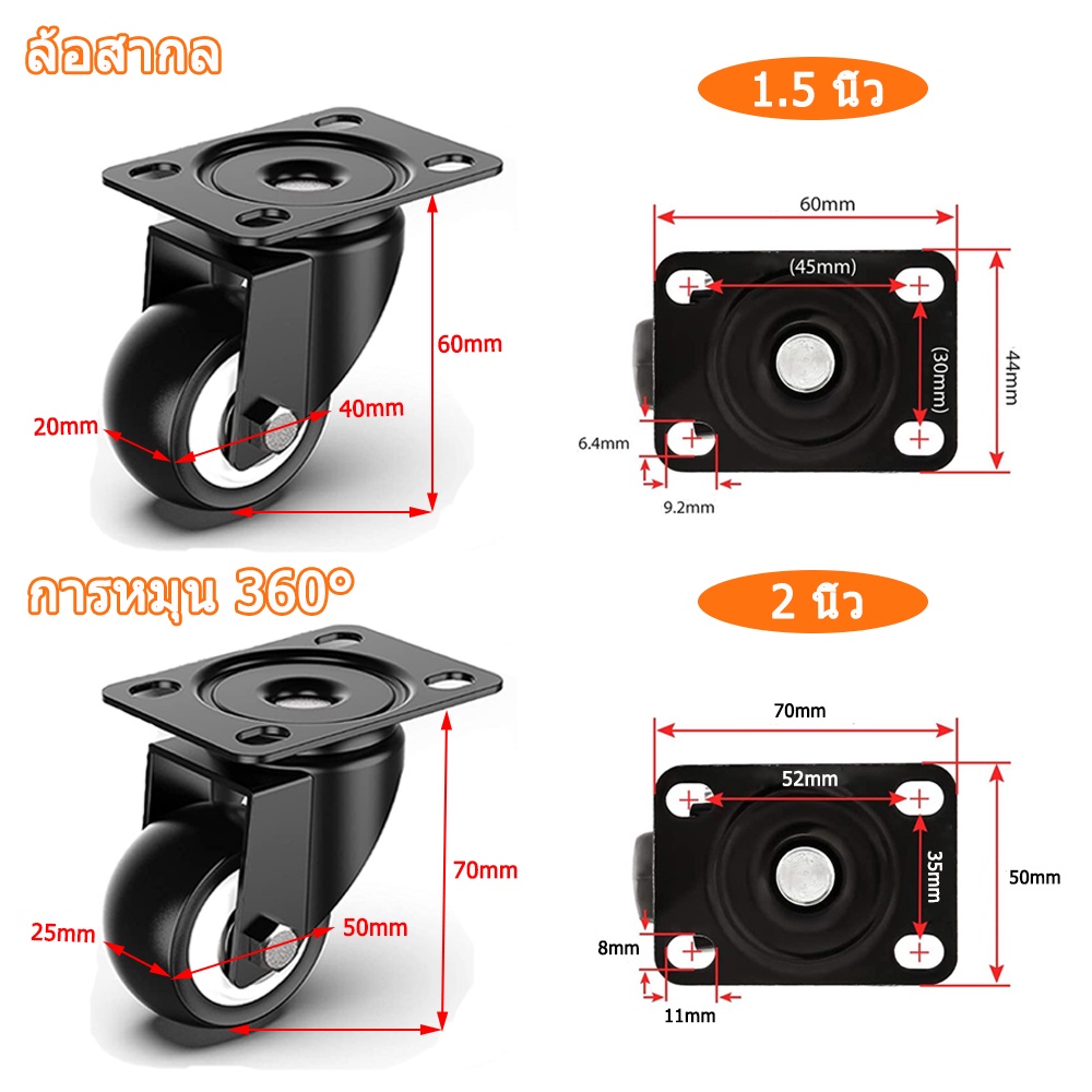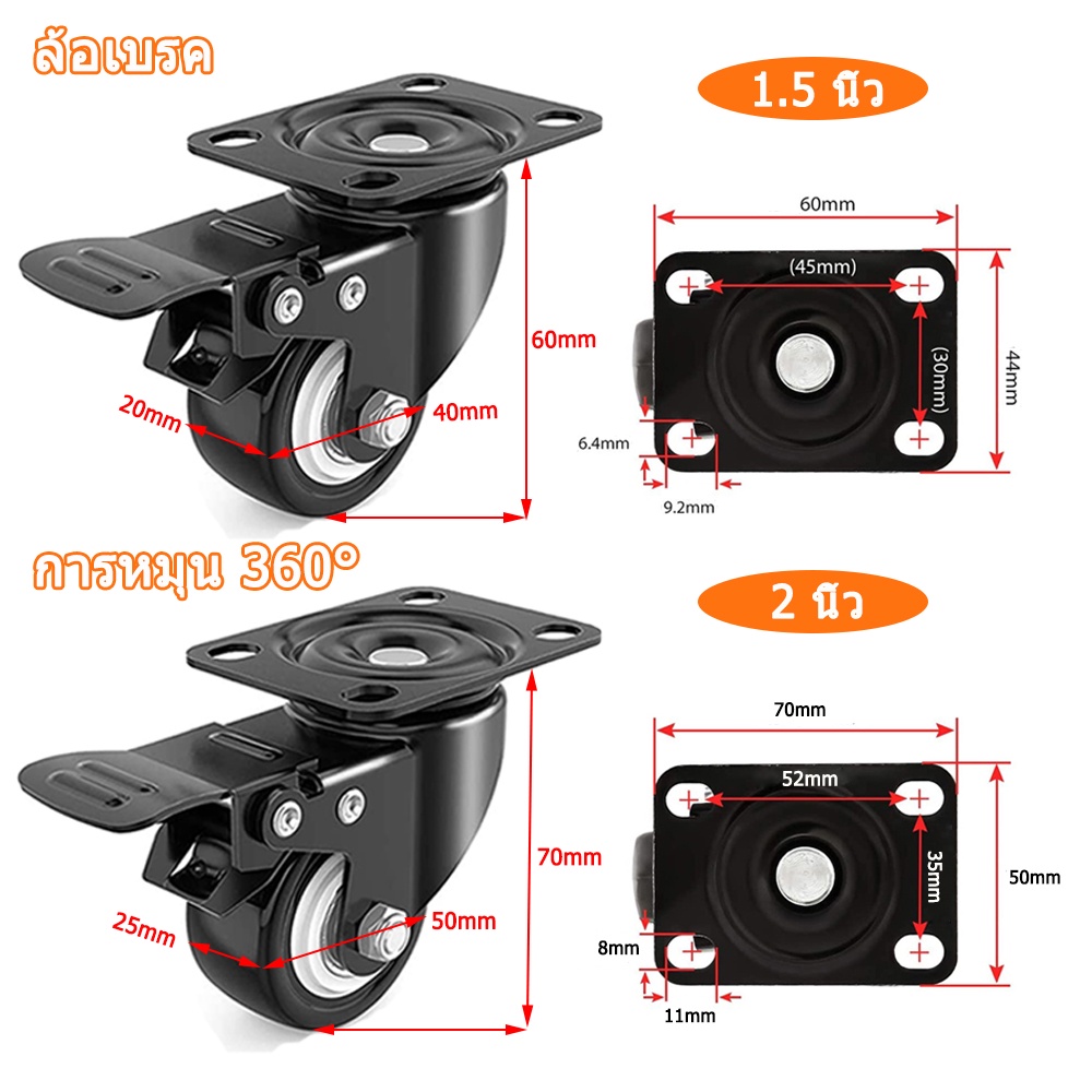 ล้อรถเข็น 2 นิ้ว ลูกล้อ 1.5 นิ้ว ล้อเลื่อนสำหรับรถเข็น ล้อเก้าอี้ เงียบและทนต่อการสึกหรอ โหลดสูงมาก คุณสมบัติค