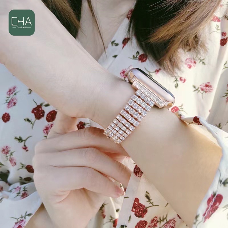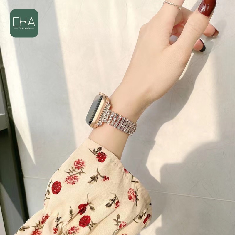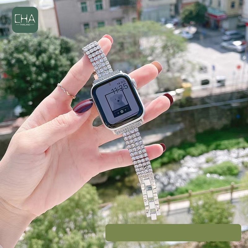 สาย นาฬิกา smart watch 11/10/9/8/7/se/6 สายและผู้หญิงสายเพชร 38/40/41/42/45/46/49มม.สร้อยข้อมือเพชรสแตนเลส สาย นาฬิกา