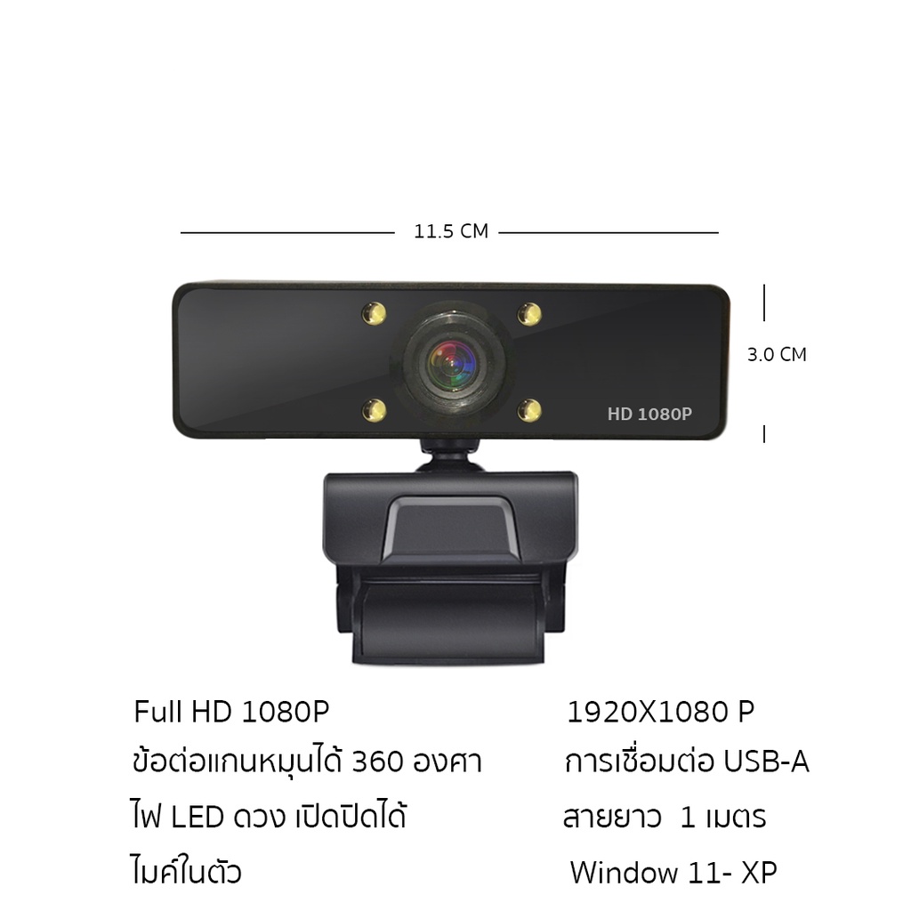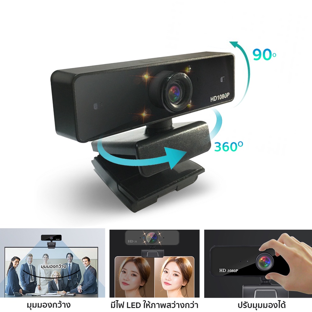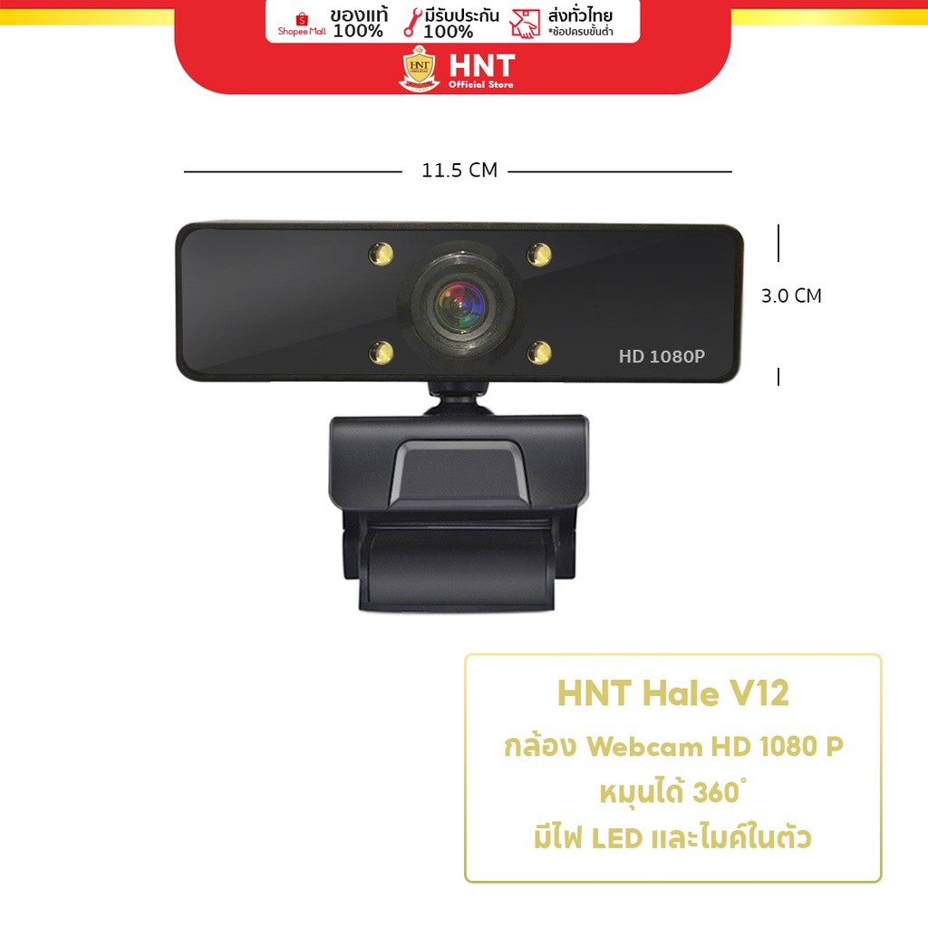HNT V12 กล้องเว็บแคม webcam PC มีไฟ LED หมุนได้ 360 องศา ชัด1080p พร้อมไมโครโฟนในตัว WEB CAMERA FULL HD 1080P
