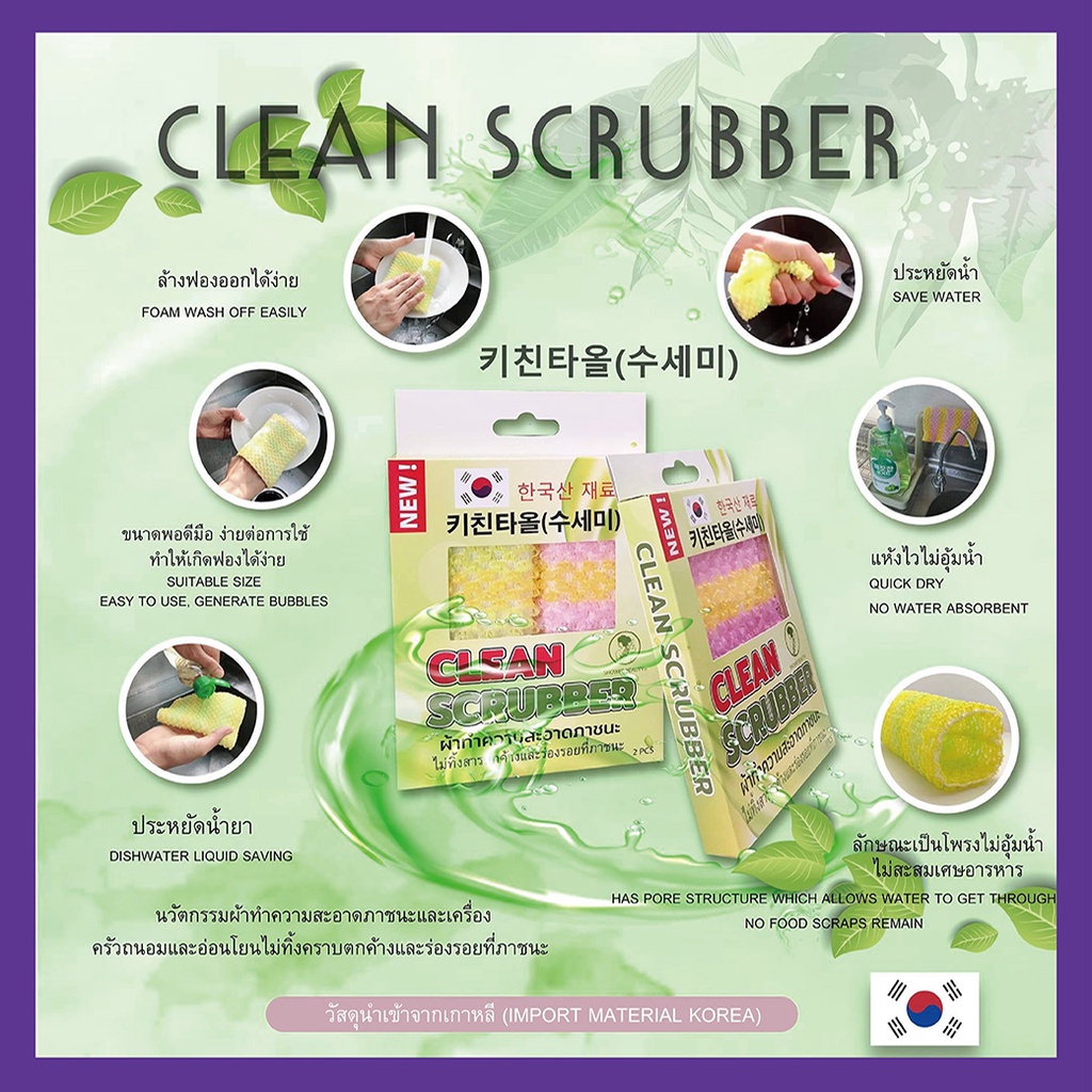kitchen towel clean scrubber 2pcsนวัตกรรมผ้าล้างจานชามและเครื่องครัว ไม่ทิ้งสารตกค้าง 키친타올 수세미