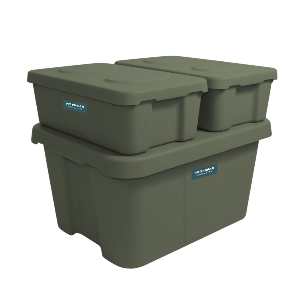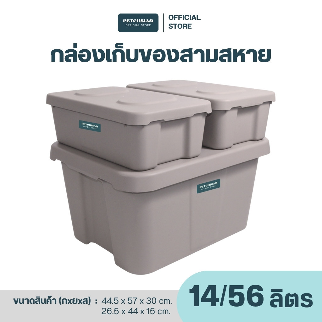 PST กล่องพลาสติกเก็บของอเนกประสงค์พร้อมฝา 14 ลิตร และ 56 ลิตรเพชรสยาม 1 เซต รุ่นสามสหาย
