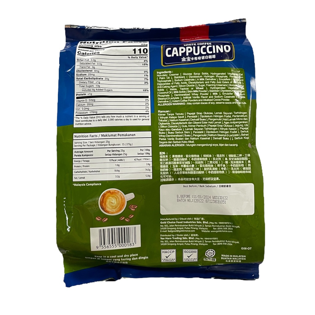 White Coffee Cappuccino กาเเฟคาปูชิโน 15 ซอง