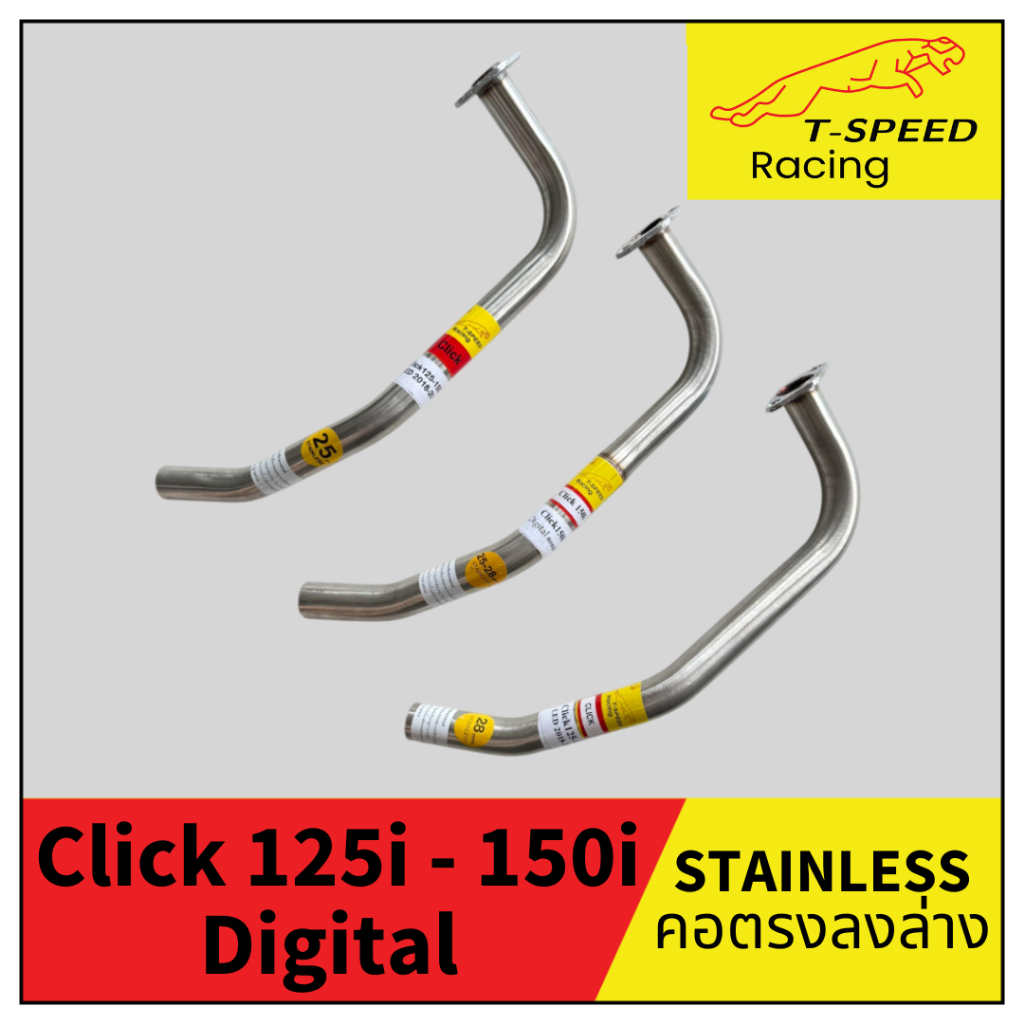 [ฟรีประเก็นปากท่อ] คอท่อ Honda PCX 150 LED - Click 125i-150i Digital 2018 คอโค้งเดิม/คอตรง สแตนเลส 304 Size 25/28/32 mm.