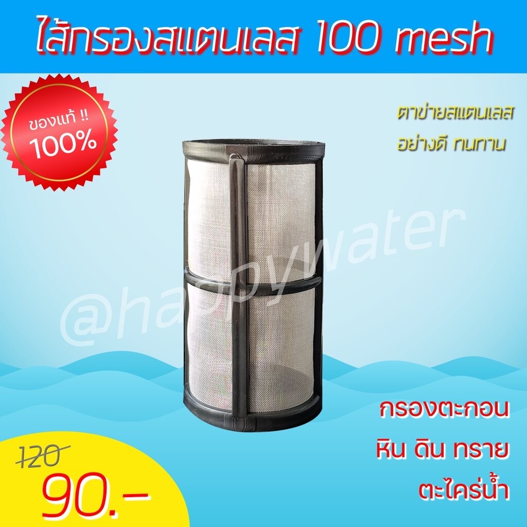 ไส้กรองตาข่ายสแตนเลส 100 mesh ล้างได้ ทนทาน กรองหยาบ strainer filter ดักตะกอน หิน ดิน ทราย ตะไคร่น้ำ