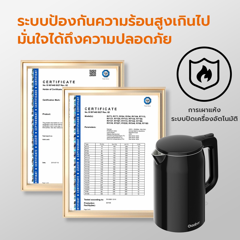 Gaabor 2 ลิตร กาต้มน้ำร้อนไฟฟ้า 1500W เดือดเร็ว ตัดไฟอัตโนมัติ ใช้ในครัวเรือน Electric kettle รุ่น EK-20M01A